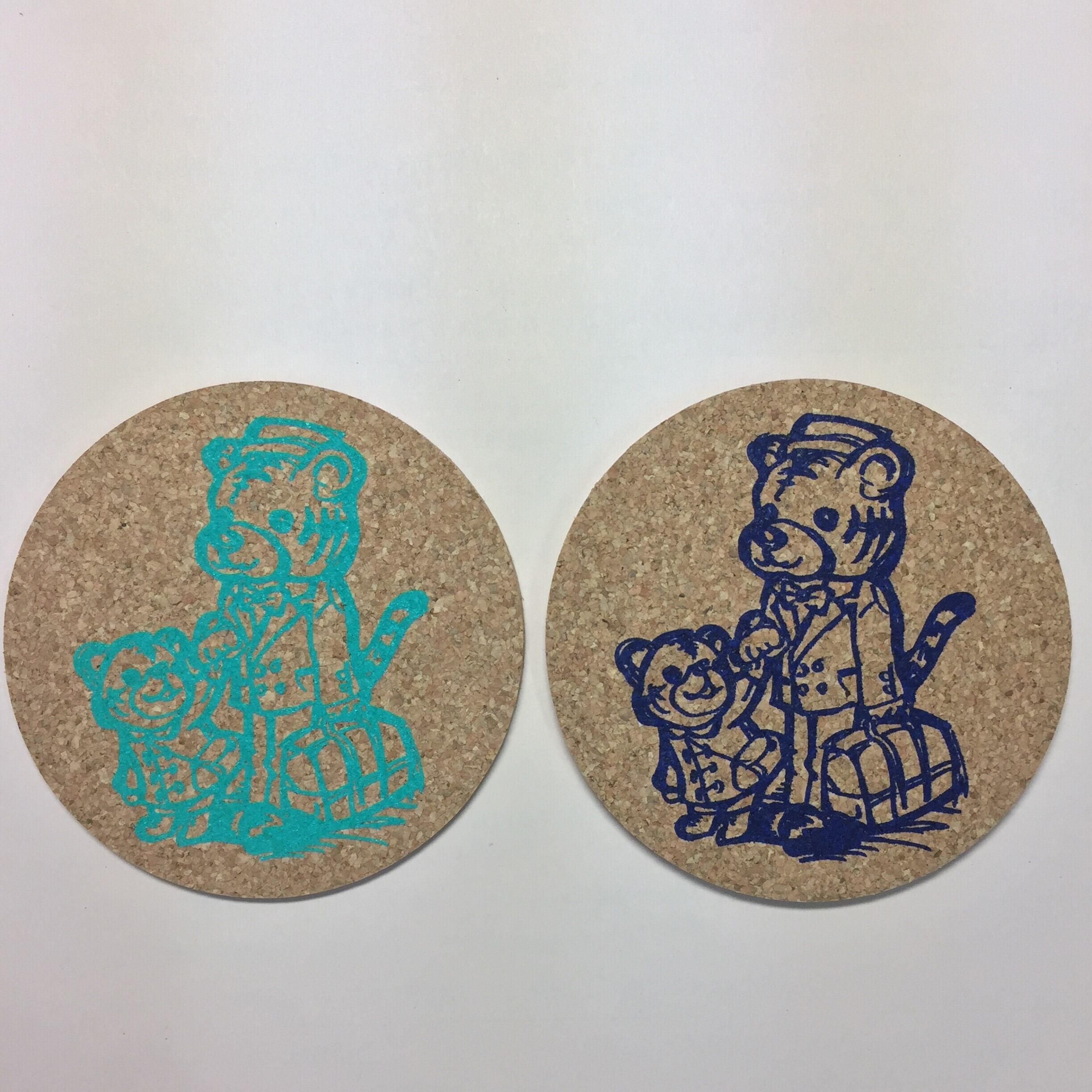 コルクコースター直径90ミリ丸型・角丸型5ミリ厚2色印刷 300枚